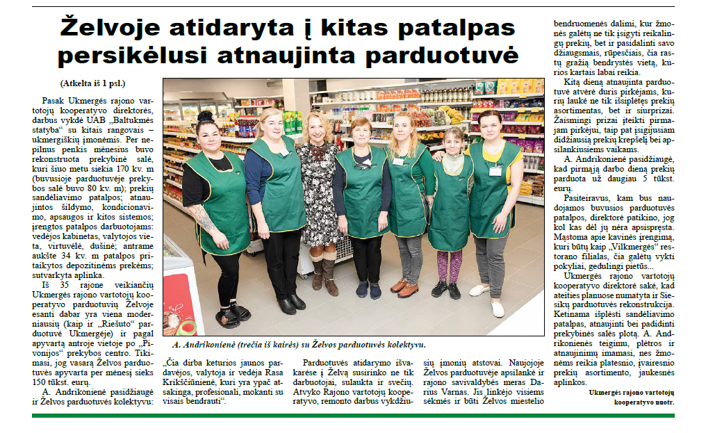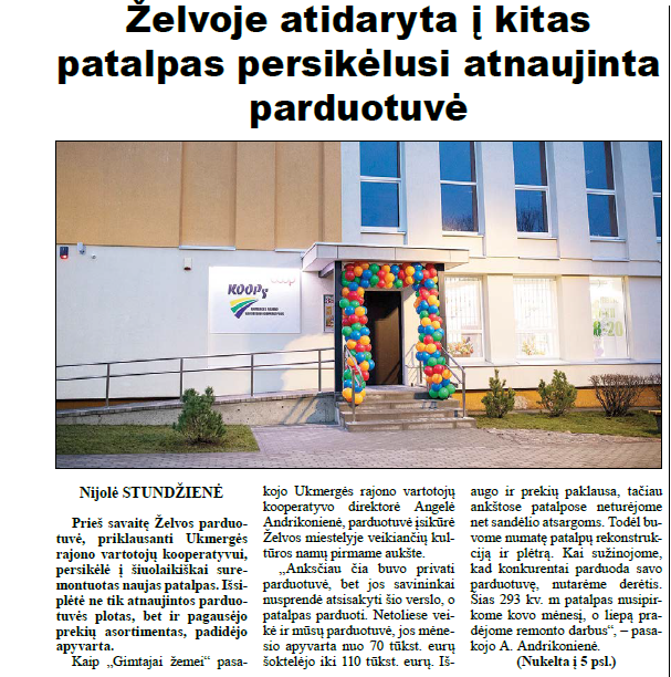 Investicijos, naujoji parduotuvė, rekonstrukcijos, kavos aparatai apie tai ir dar daugiau – “Ukmergės žinios” straipsnyje pasakoja URVK Direktorė Angelė Andrikonienė