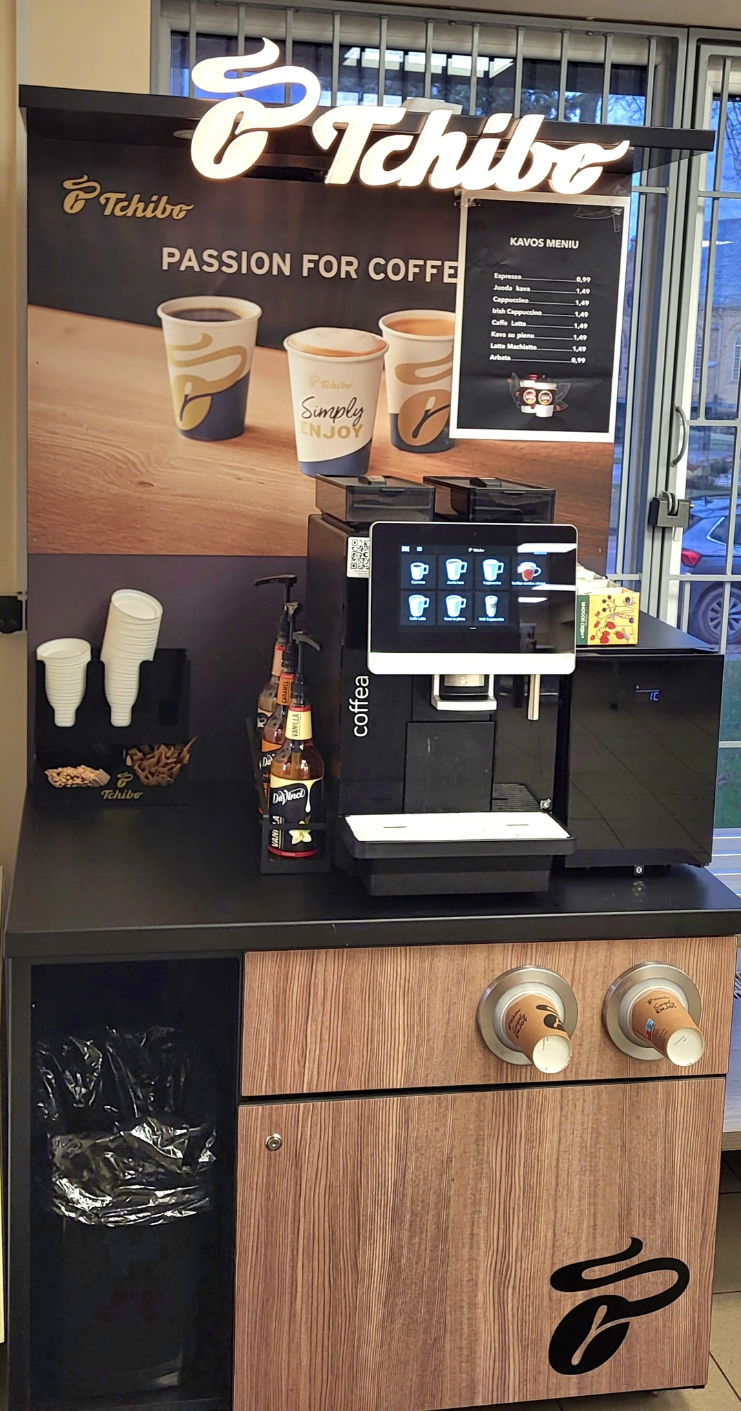 XL kavos ar kito karšto gėrimo, kurio galite gauti iki 300ml.-kaina tik VIENAS EURASJa galėsit mėgautis visą parą! Tokie aparatai greitai bus pastatyti prie Pivonijos, Pušelės, Uosio, Vaivorykštės,Paparčio parduotuvių! Vilniaus gt.pard. Nepamiršome ir kaimo vietovių: Vidiškiai,Vepriai, Taujėnai, Želva, Deltuva tai tik pradžiai…
